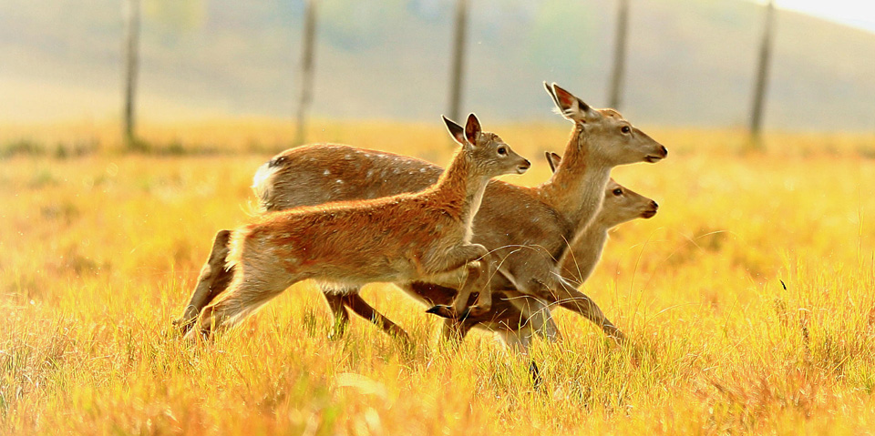 梅花鹿腿骨折后,只要有皮肉相連。三天就敢著地,十天敢奔走,二十天就能恢復如初。
